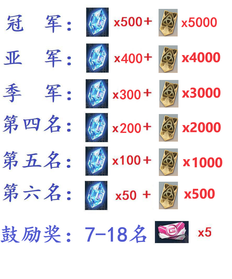 进入半决赛(前18名)的玩家都有奖励(以进入名单为准,半决赛替补不算),具体奖励如下:
