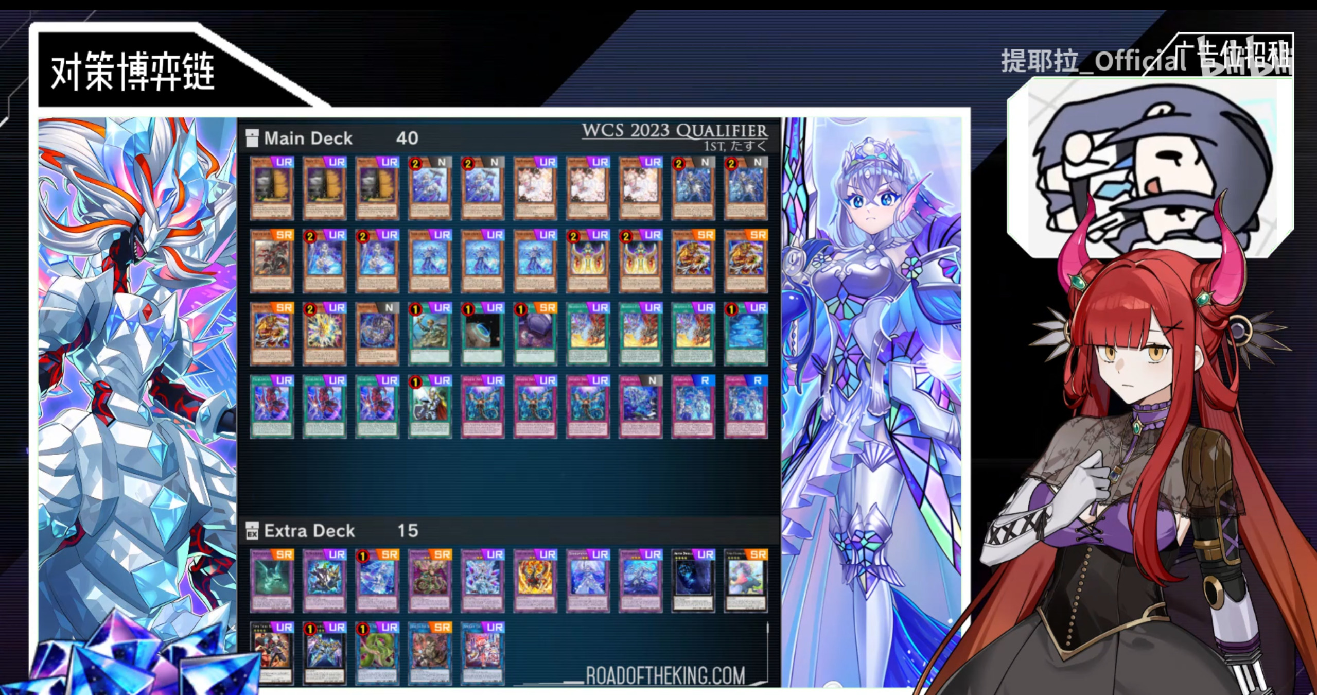 首先扛起抗珠大旗的卡组是救祓少女,这是一个Bo1环境下针对珠泪哀歌族的强力counter选择。在比赛第一天结束时,顶尖玩家大多在使用珠泪哀歌,为了领先游戏环境一步,一些玩家在第二天转而使用兼容次元系与王谷的救袱少女来针对珠泪。