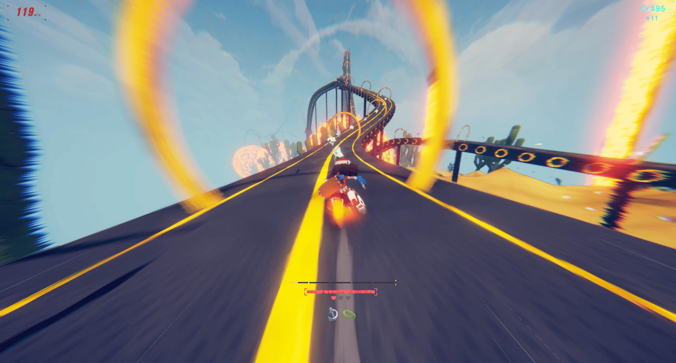 接下来数月,团队聚焦于玩法拓展:高速奔跑的爽感已获验证,但如何延伸更多趣味?早期构想的"多人吃鸡竞速模式"最终被舍弃,转而专注打造单人闯关体验——融合程序生成关卡、能力升级系统和角色成长要素。这是Landfall首次在标志性的高速玩法中融入完整角色与剧情叙事。