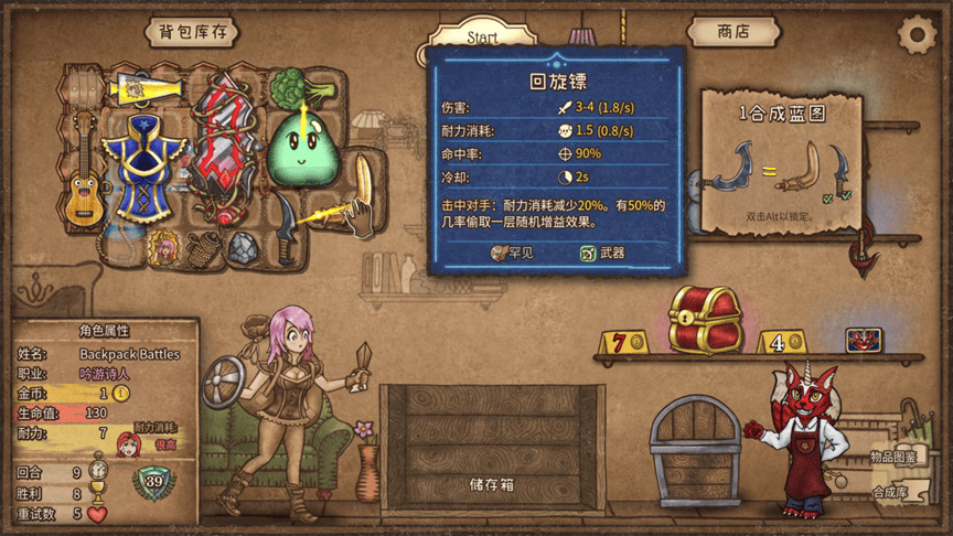 游戏类型:背包管理,牌组构筑,自动战斗,PVP