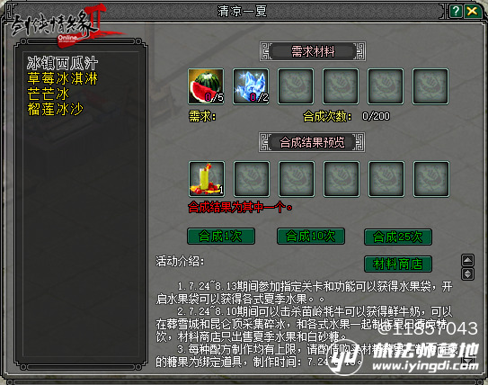 炎炎夏日,大侠前往“游戏活动大使”处可领取一本内含多种夏日特饮的清凉手册,可按需自制饮品,清凉一夏。
